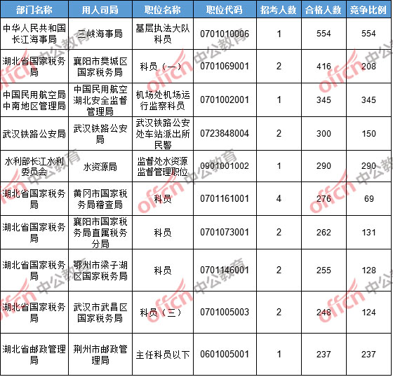 截止到22日8時,競爭比例和報考人數最多的職位均為中華人民共和國長江海事局三峽海事局基層執法大隊科員職位,招錄1人,截止到22日8時通過人數為554人!