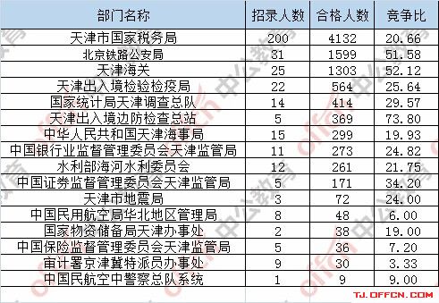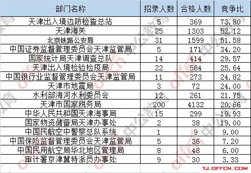 為幫助廣大考生更清晰的了解今日報(bào)名情況,天津中公教育整理了審核通過人數(shù)前五位的部門以及競爭比例最激烈的五大部門,供廣大考生參考: