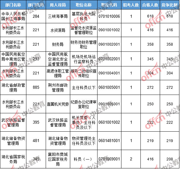 截止到22日16時,競爭比例和報考人數最多的職位仍然為中華人民共和國長江海事局基層執法大隊科員職位,招錄1人,截止到22日16時通過人數為618人!