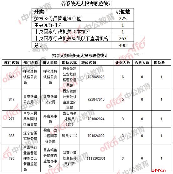截至22日16時,仍有490個崗位報考人數還未破零,占3.14%。不僅有邊遠艱苦地區的職位,還有部門來自中央機關的職位,目前中央黨群機關和中央國家行政機關(本級)均只剩一個職位無人報考,希望尚未出手的考生重點考慮一下。