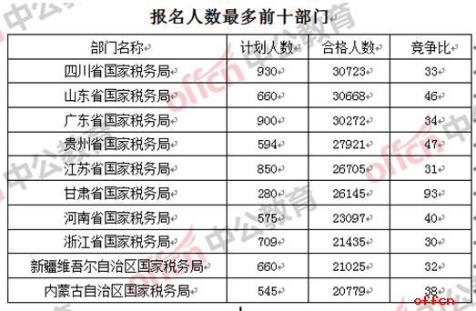 30723—最熱部門報考30723人,3省國稅破3萬