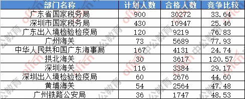 為幫助廣大考生更清晰的了解今日報名情況,廣東中公網校整理了審核通過人數前十位的部門以及競爭比例最激烈的十大部門,供廣大考生參考: