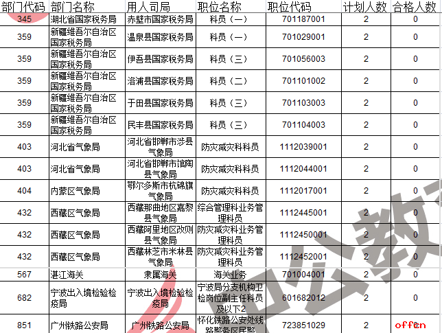 查看全部下載附件:【23日8時】2017國考報名人數統計:1639個低于面試比例職位匯總(含438個無人報考職位).xls