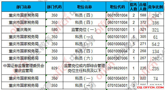 合格人數前十的職位主要集中在重慶市國家稅務局、重慶海關等部門,具體信息如下: