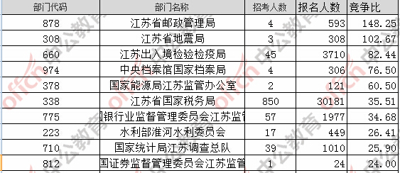 為幫助廣大考生更清晰的了解今日報(bào)名情況,江蘇中公網(wǎng)校整理了審核通過人數(shù)前十位的部門以及競爭比例最激烈的十大部門,供廣大考生參考: