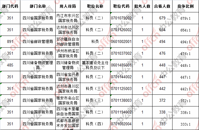 首日報名通過審核人數前十的職位主要集四川省國家稅務局等部門,具體信息如下: