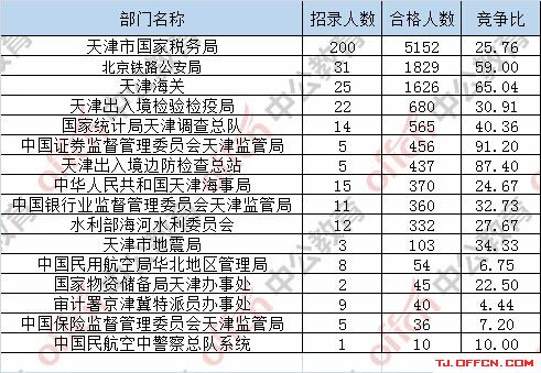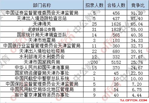 為幫助廣大考生更清晰的了解今日報名情況,天津中公網校整理了審核通過人數前五位的部門以及競爭比例最激烈的五大部門,供廣大考生參考: