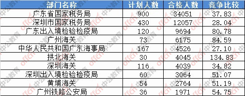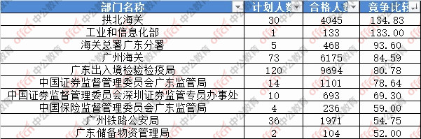 為幫助廣大考生更清晰的了解今日報名情況,廣東中公網校整理了審核通過人數前十位的部門以及競爭比例最激烈的十大部門,供廣大考生參考: