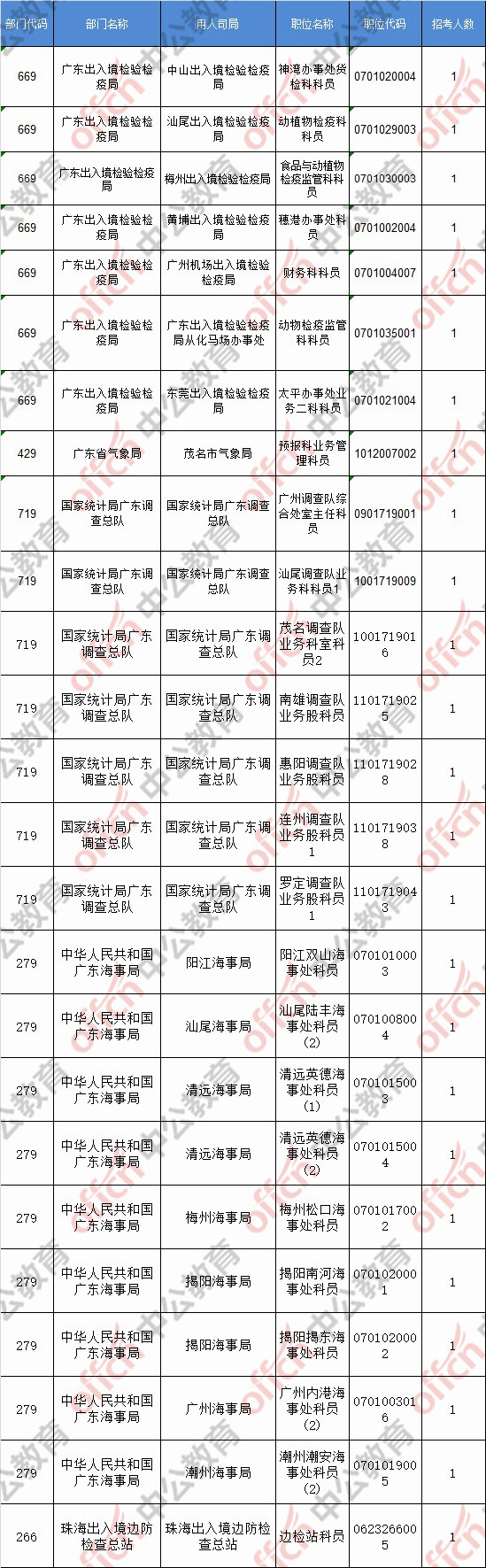 截止到23日16時,工作地點在廣東的職位共有25個無人報考,占全部職位的2.4%。下面是無人報考職位一覽表,中公網校專家建議廣大考生多關注一些較冷職位,避免激烈競爭,結合自身條件,找到屬于自己的職位。