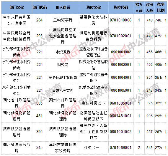 截止到10月24日8時,報名通過審核人數和競爭比例的職位為三峽海事局基層執法大隊科員一職,招錄1人,過審人數748人,競爭比例為748:1。具體信息如下: