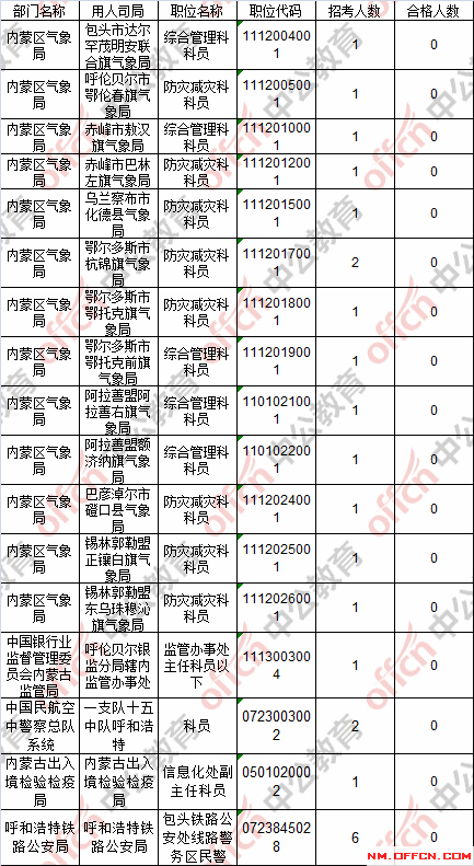 截止到24日17:30時(shí),工作地點(diǎn)在內(nèi)蒙古17個(gè)職位無(wú)人報(bào)考。具體職位如下:
