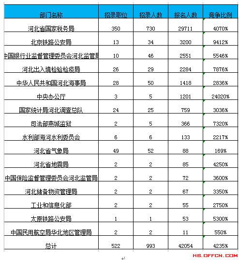 2017國考河北省地區所有職位報名情況下載表格查看: