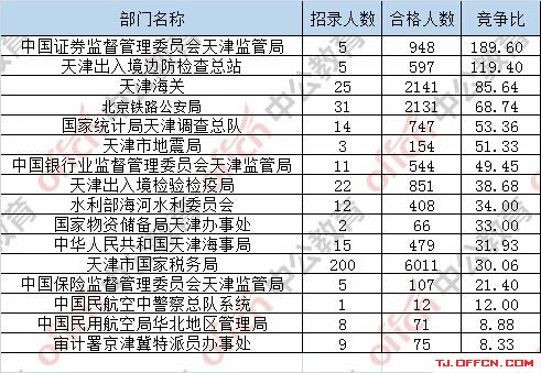 截至24日17時30分,通過審核人數前三位的部門依次是:天津市國家稅務局、天津海關、北京鐵路公安局,三部門通過審核總人數達10283人,占通過審核總人數的67.03%。
