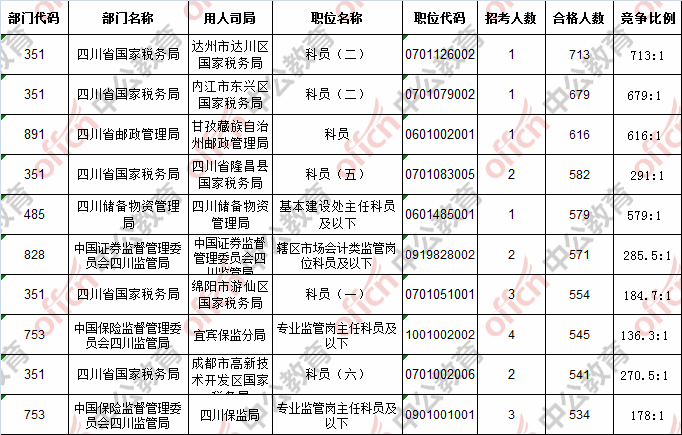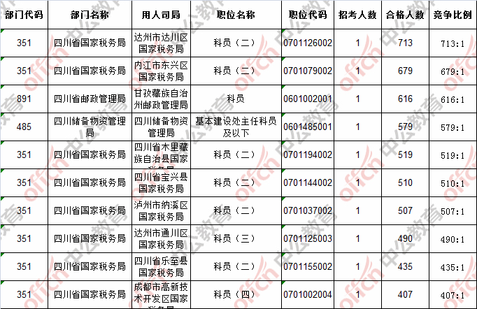 首日報名通過審核人數前十的職位主要集四川省國家稅務局等部門,具體信息如下: