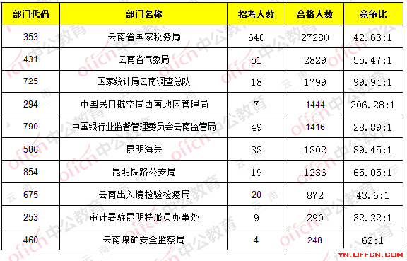 為幫助廣大考生更清晰的了解今日?qǐng)?bào)名情況,云南中公網(wǎng)校整理了審核通過(guò)人數(shù)部門排名,供廣大考生參考: