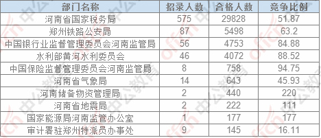 截止24日17:30,通過審核人數前三位的部門依次是:河南省國家稅務局、鄭州鐵路公安局,中國銀行業監督管理委員會河南監管局,三部門通過審核總人數40079人,占通過審核總人數的86.08%。