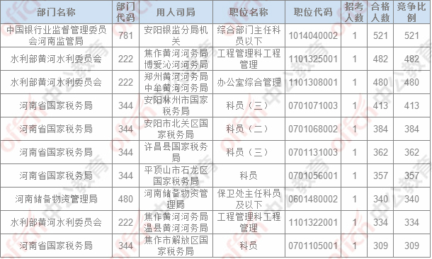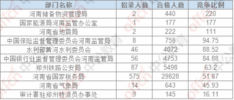 報名通過審核人數排名前列的職位主要集中在鄭州鐵路公安局、河南省國家稅務局,中國銀行業監督管理委員會河南監管局,具體信息如下: