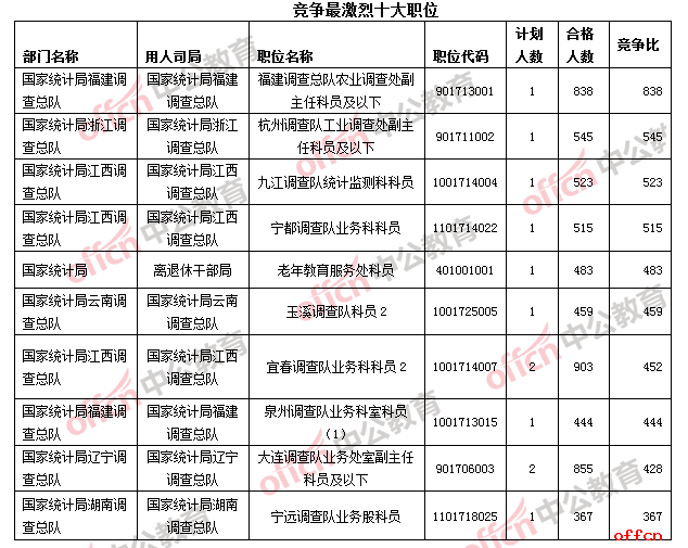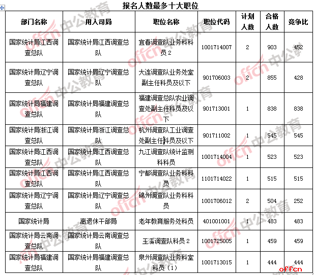 2017國(guó)考報(bào)名結(jié)束:統(tǒng)計(jì)局過(guò)審45491人 平均競(jìng)爭(zhēng)比51:1
