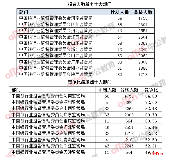 2017國考報名結束:銀監會過審43066人 平均競爭比36.5:1