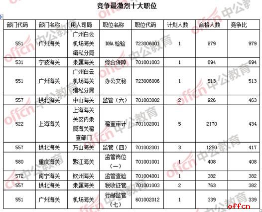 2017國考海關39個部門共提供304個職位,招錄782人。截至24日17:30,總報名審核通過人數(shù)為46183人,競爭比例為59:1,所有職位均有人通過審核。下面是中公網(wǎng)校有關海關報名情況,供考生參考: