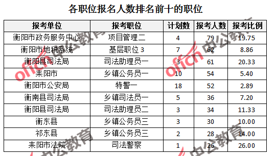 為幫助廣大考生更清晰的了解報名情況,中公教育整理了衡陽市各職位的報名人數排名以及競爭比例排名,供廣大考生參考: