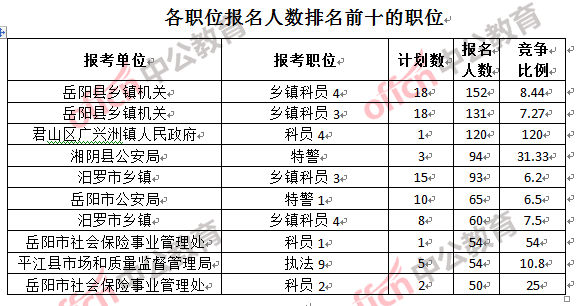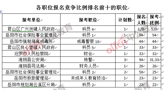 一、岳陽公務員報名人數:各職位分析
