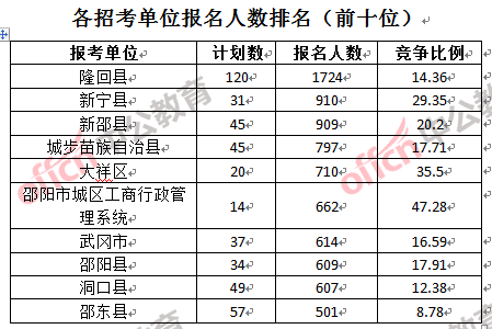 二、邵陽(yáng)公務(wù)員報(bào)名人數(shù):各招考單位分析