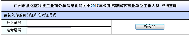 2017廣東從化區科技工業商務和信息化局招聘考試筆試成績查詢入口