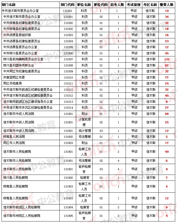 【佳木斯地區】2014年黑龍江省公務員考試繳費人數統計[5.18]
