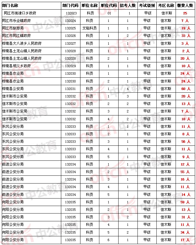 【佳木斯地區】2014年黑龍江省公務員考試繳費人數統計[5.18]