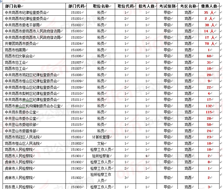 中公網校為參加2014年黑龍江省公務員考試的考生整理截止至5月18日早9點的部分繳費人數,并且在更新中。。。由于報名網站報名情況每30分鐘統計一次,數據可能會有細微差異,所有數據僅供大家參考。