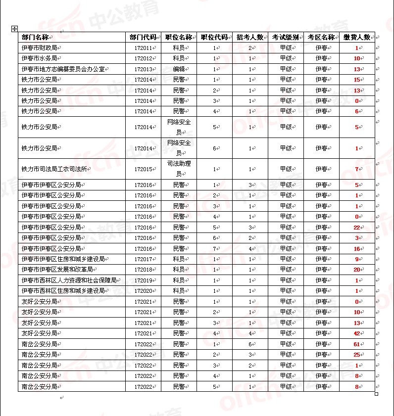 2014年黑龍江省考報名人數統計-伊春[5月17日]