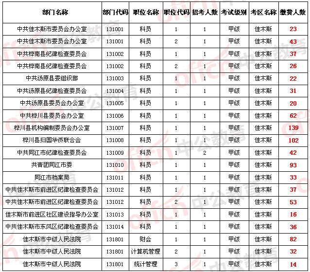 【佳木斯地區】2014年黑龍江省公務員考試繳費人數統計[5.19]