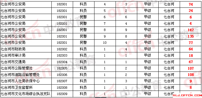 2014年黑龍江七臺河公務(wù)員考試?yán)U費人數(shù)統(tǒng)計表(5月19日)