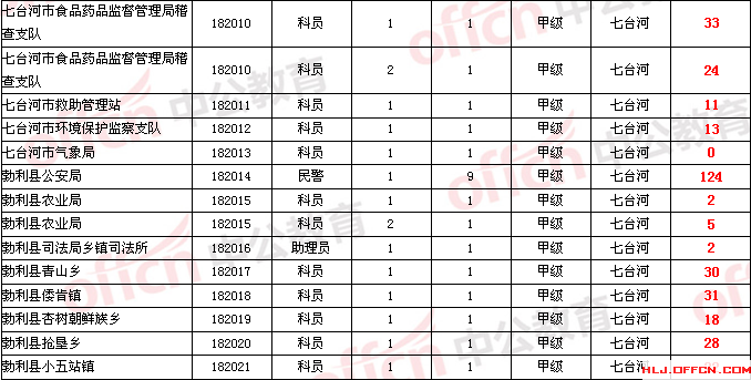 2014年黑龍江七臺河公務員考試繳費人數統計表(5月19日)