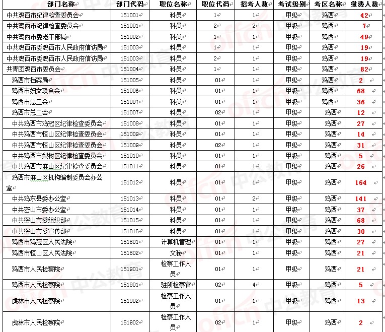 中公網校為參加2014年黑龍江省公務員考試的考生整理截止至5月19日部分繳費人數,并且在更新中。。。由于報名網站報名情況每30分鐘統計一次,數據可能會有細微差異,所有數據僅供大家參考。