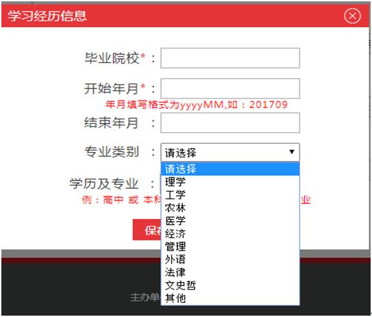 在填寫學(xué)習(xí)經(jīng)歷時(shí)要專門填寫“專業(yè)類別”,很多考生對自己的專業(yè)類別不是很清楚,考生可以根據(jù)自己的學(xué)歷情況,選擇相應(yīng)專業(yè)大類,不能確定的填寫其他。