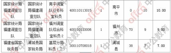報名通過審核人數前十的職位主要集中在國家統計局福建調查總隊、福建省國家稅務局、廈門出入境檢驗檢疫局等部門,具體信息如下:
