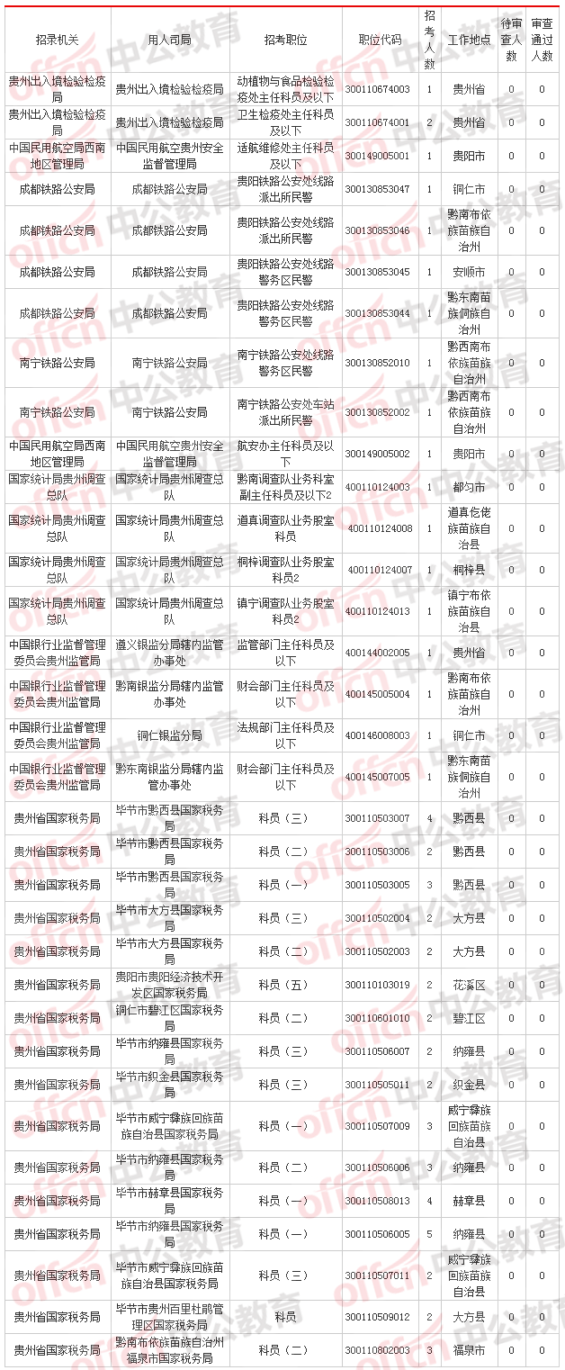 [1日16時]2018國考報名數(shù)據:貴州4738人過審 最熱職位136:1