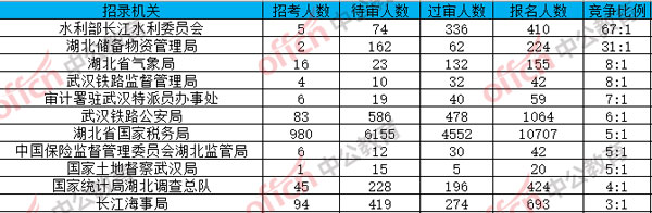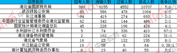 湖北報(bào)名競(jìng)爭(zhēng)最激烈的十大部門(mén)