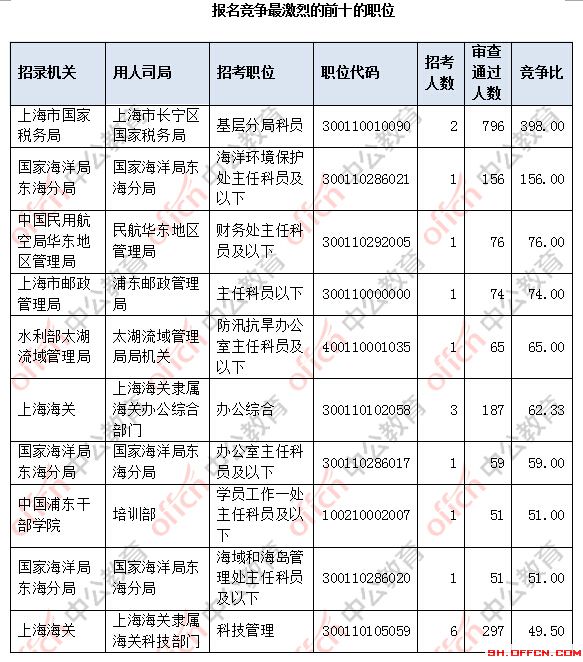 [2日9時]2018國考報名數據:上海5027人過審 最熱競爭比398:1