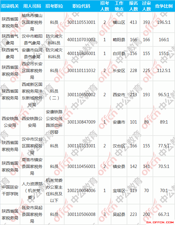 [2日16時]2018陜西國考報名人數統計:陜西6645人過審 最熱職位196.5:1