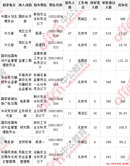 一、北京地區招錄大戶——國稅 競爭比7:1