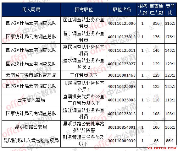截止11月2日16時,國考報名第三天,國家統計局云南調查總隊,麗江調查隊業務科室科員,職位代碼:400110125006,招錄1人,審查通過人數為316人,具體信息如下: