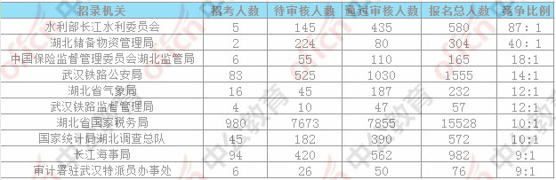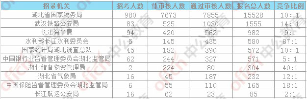 湖北報(bào)名競(jìng)爭(zhēng)最激烈的十大部門