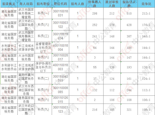 湖北報(bào)名競(jìng)爭(zhēng)最激烈的前十的職位