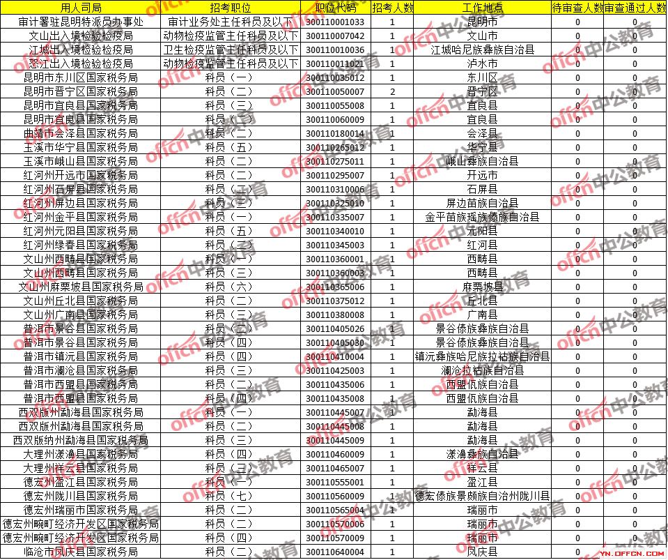 【截止2日16時】云南省2018國考無人報考職位詳情