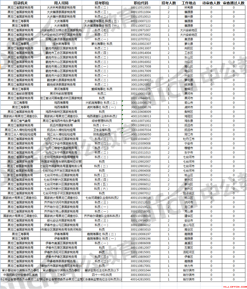 【11月3日11時】2018黑龍江國考報名人數統計分析61個崗位無人報考