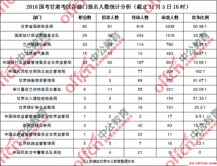 [11月5日16時]甘肅2018國考報名人數統計:過審9241人 最熱競爭比例620:1(2)