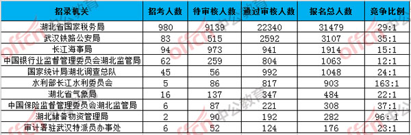 湖北報(bào)名通過(guò)審核人數(shù)前十的職位